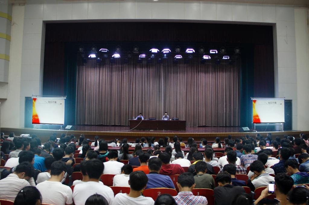 为进一步提高完美官网师生对诈骗犯罪的识别能力,增强防范意识,9月29日下午,学生处、保卫处邀请郑州市公安局反虚假信息诈骗中心侦查队长蔡培涛在英才校区大礼堂为完美官网师生举办“预防电信、网络诈骗”专题讲座。2016级新生以及学生处、保卫处、各院系老师共2000余人聆听了讲座。