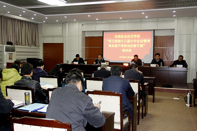 11月18日上午,学校在英才校区行政楼第一会议室举行“学习贯彻十八届六中全会精神,做忠诚干净担当纪检干部”主题培训班开班仪式,校纪委书记荆其增,纪委副书记高金星、杨成、顾国超、张建国出席了开班仪式,全校纪检监察干部和各党总支纪检委员共计40余人参加了开班仪式并进行了集中学习和分组讨论。开班仪式由杨成主持。