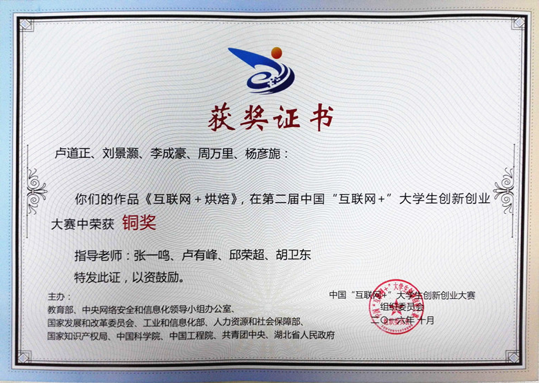 近日,从省教育厅获悉,由完美官网大学生创业孵化园推荐的创业项目《互联网+烘焙》,在第二届中国“互联网+”大学生创新创业大赛中荣获全国铜奖。