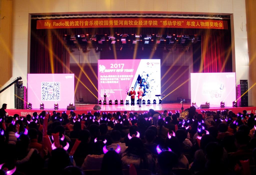 本次活动是由完美官网党委宣传部、团委携手河南电台FM90.0 My Radio联合举办的一场既青春激昂又温情洋溢的迎新年音乐晚会。伴随着流光溢彩的舞台灯光和高品质的音响效果,10位在全校范围内精心选拔并经过专业培训的优秀校园歌手依次登场,《不为谁而作的歌》、《全世界谁倾听你》、《一次就好》、《浮夸》、《彩虹》等一首首脍炙人口、深受青年学生喜爱的歌曲一次次将现场1300余名师生的激情点燃,荧光棒、闪光灯交相辉映,掌声、喝彩声此起彼伏,台上台下交汇成了一片欢乐的海洋。