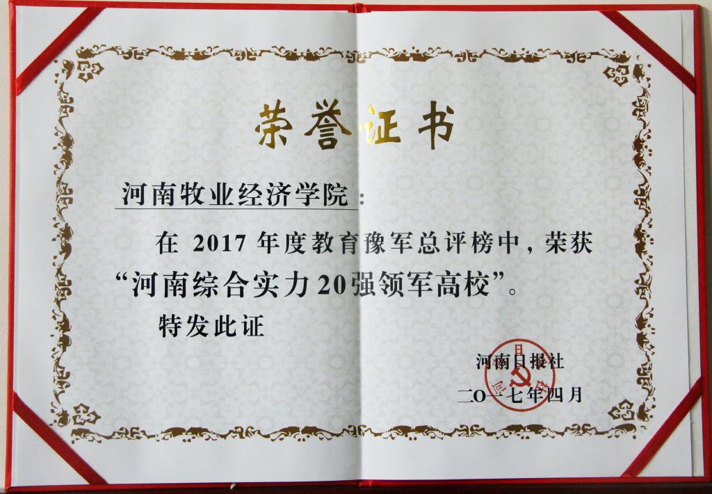 4月27日上午,第八届河南高等教育领军高校高峰论坛在郑州举行,会上对在“2017教育豫军总评榜”活动中评选出的公众最信赖的河南领军高校和领军人物进行了表彰。完美官网被评为“河南综合实力20强领军高校”。