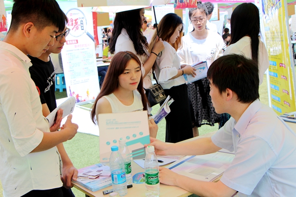 为促进毕业生充分就业,5月20日,学校在龙子湖校区举办2017届毕业生夏季校园双选会,来自北京、上海、广东、天津等十七个省市的600余家用人单位参会,共提供就业岗位26000余个,毕业生供需比接近3:1,一些单位为了吸引毕业生,不但开出“高薪”,还开出“带薪休假、定期旅游、节日贺礼”等福利待遇。