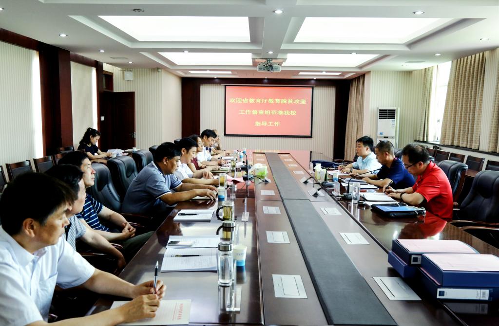李绍文从开展教育脱贫工作的基本思路、采取的措施和成效、存在的问题和不足等方面详细汇报了学校开展教育脱贫攻坚工作落实情况。他表示,学校多年来高度重视教育扶贫工作,校内以贫困家庭学生建档立卡和毕业生就业工作为重点,开展家庭困难学生助学贷款、国家助学金评定、企业助学金评定、勤工助学等工作,解决贫困家庭学生学业和就业;校外以智力扶贫为主旨,以人才、教育、科技、文化资源支持为载体,深入贫困地区贫困村开展驻村扶贫、支教帮教、科普传播等工作,带动和帮助地方人民脱贫致富,助推地方经济发展,取得了显著成效。