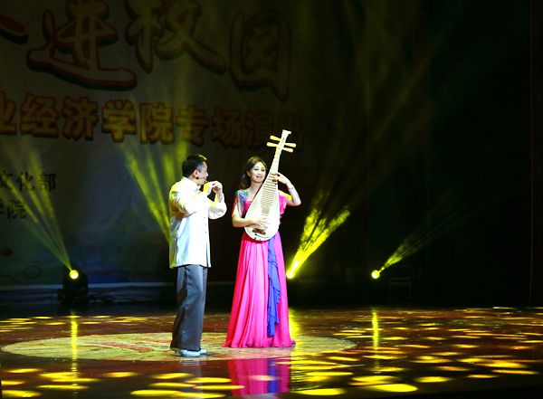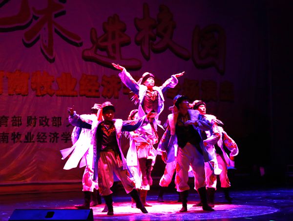 演出中,为使广大师生能够真正领略到民族文化的魅力,近距离接触民族艺术,少数民族艺术家们在民族舞蹈、器乐表演的同时,还进行了现场交流、讲解和互动。最后,整场晚会在以《走在乡间的小路上》《同桌的你》《飞得更高》等熟悉的旋律组成的舞蹈《青春之歌》中圆满谢幕。