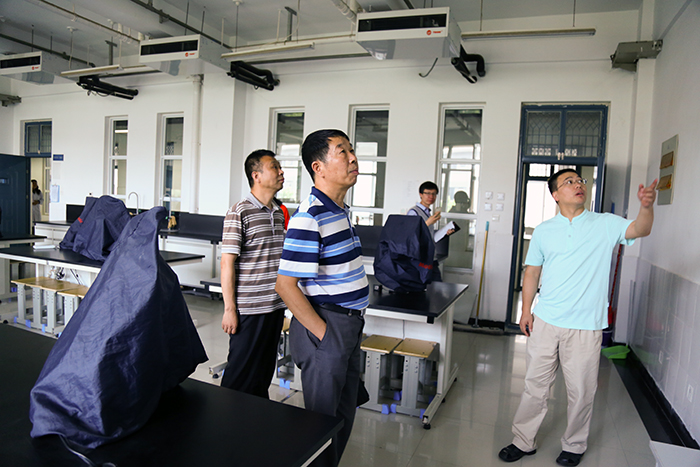 检查组听取汇报后,现场查阅了学校自查报告、安全管理规章制度、师生安全教育与培训、危险化学品台账记录等相关材料,并对动物医学院、生物工程学院、实验研究中心等涉及危化品使用的实验室安全管理情况进行了实地检查,重点查看了各部门实验室环境与管理、危化品仓库和危险废物存储室。