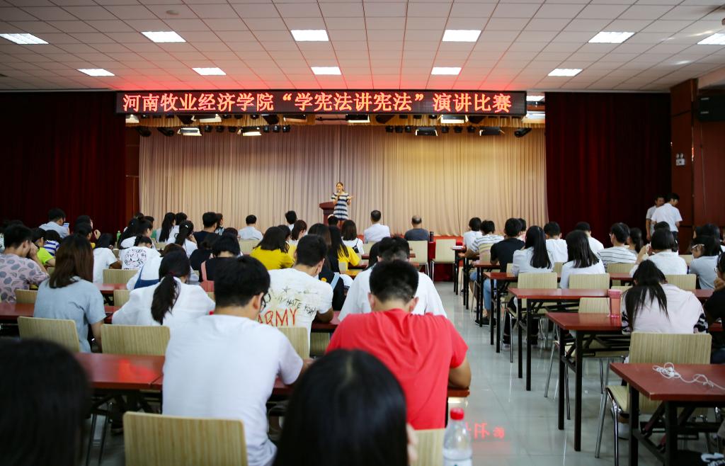 本次“学宪法讲宪法”演讲比赛经过初赛和决赛两个阶段,演讲内容以讲宪法故事、讲对宪法的认识与体会、谈宪法精神等为主题。在决赛现场,参赛选手紧扣主题,或从法理,或从历史,或从宪法在依法治国进程中的地位等不同角度,阐释了宪法的权威性、原则性,结合培育和践行社会主义核心价值观,结合日常生活特别是大学校园生活,分析了学宪法、讲宪法对大学生成长进步的重大作用,表达了从自身做起,从日常小事做起,树立宪法意识,培育宪法精神,遵守以宪法为核心的法律法规,做遵纪守法的好公民和社会主义事业建设者的心声。他们自信沉着,激进昂扬,精彩的发言博得了台下阵阵喝彩。最终,动物医学院的王思梦同学、工程管理学院的李琪琪同学获得一等奖,艺术学院的王曼等4名同学获得二等奖,农林经济管理学院的吴晨歌等8名同学获得三等奖,动物医学院、文法系、工商管理学院获得优秀组织奖。