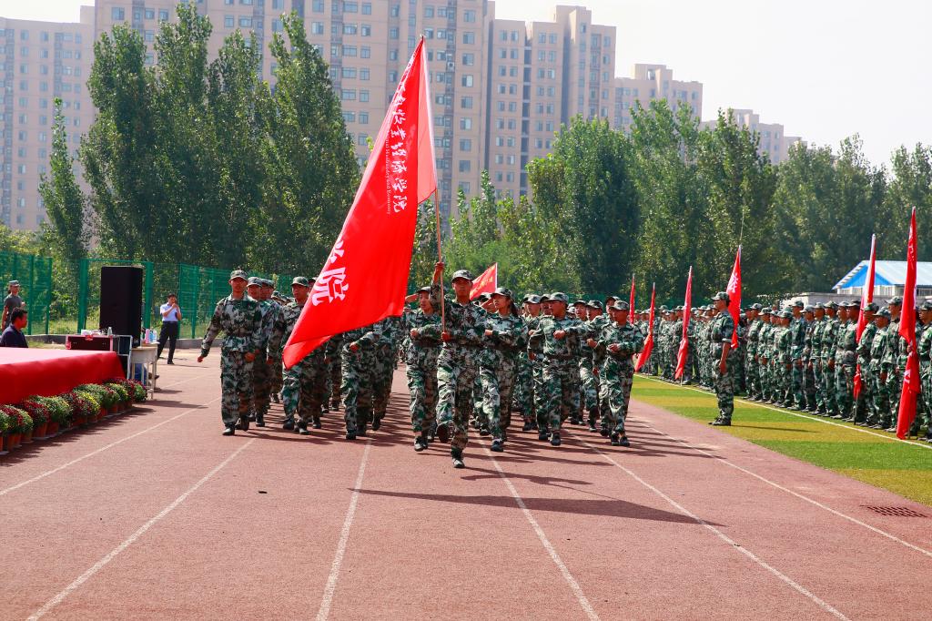 典礼在庄严的升国旗仪式中拉开帷幕。参加分列式表演的各个方阵在铿锵的军乐声中依次通过主席台,同学们迈着整齐的步伐,高喊响亮的口号,整齐划一的动作和英姿飒爽的风貌,赢得了学校领导、部队首长和现场观众的阵阵掌声。分列式结束后,学生代表进行了军体操表演,承训部队教官进行了军体拳表演,北林校区全体新生集体展示了方阵变化表演。