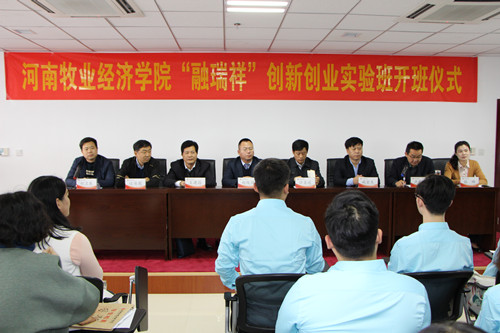 10月12日,完美官网创新创业学院首期“融瑞祥”创新创业实验班开班仪式在龙子湖校区图书馆9楼会议室举行。副校长许圣道、郑州融瑞祥动物药业有限公司董事长赵俊强、资深媒体人臧金生、龙子湖校区管委会主任王建昌,相关职能部门负责同志以及创新创业实验班全体学员、院系学生代表共100余人参加了开班仪式。