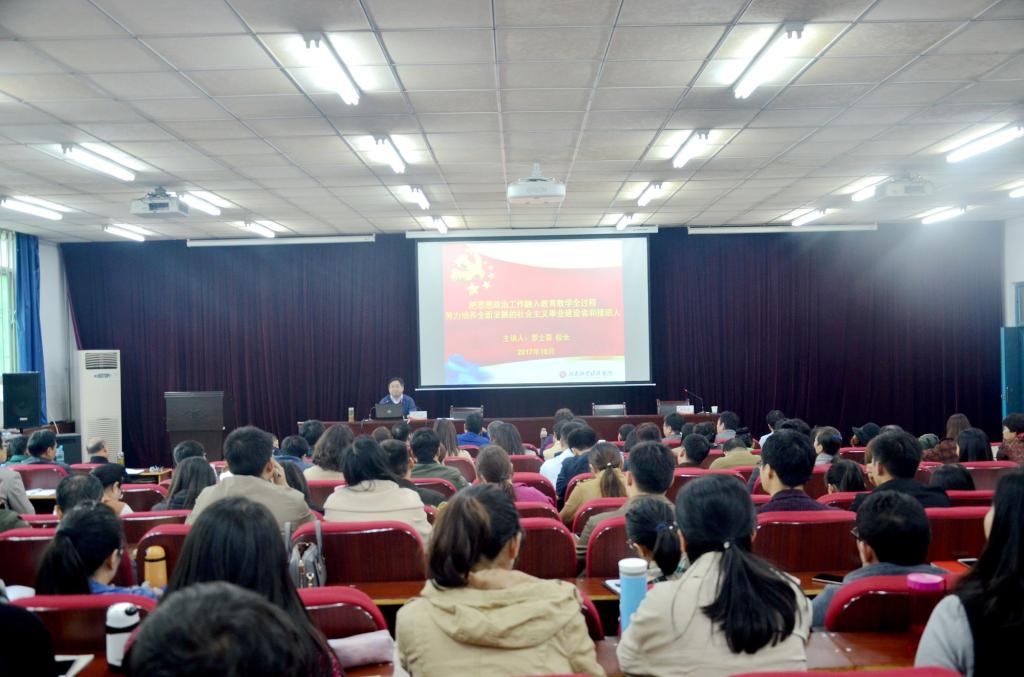 10月12日,校长罗士喜在英才校区E110报告厅为全校思想政治工作队伍作专题报告。党委副书记、副校长曾照烨,英才校区管委会主任宿金勇、北林校区管委会主任杨宝进、相关部门负责同志、思想政治理论教研部全体教师及各院系党总支副书记、团总支书记、辅导员等近200人现场听取报告。