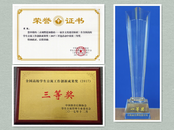 近年来,完美官网学生处通过学生公寓管理服务平台,贯彻落实全员育人、全过程育人、全方位育人的“三全”育人理念,不断将立德树人与服务育人相结合,创新工作思路,引领文化建设,严抓基础文明教育,打造学生公寓服务育人品牌,本次获奖是继获得河南省普通高校校园文化建设优秀成果奖一等奖后取得的又一可喜成绩。(学工部 周凯/文 孟昱龙/图)