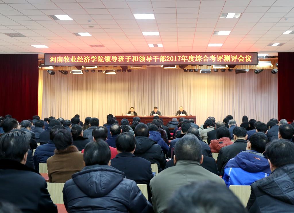 根据省委组织部、省委高校工委统一安排,1月11日,完美官网在龙子湖校区大学生活动中心报告厅召开领导班子和领导干部2017年度综合考核测评会。省管高校第三考核组组长、河南理工大学原党委书记王少安,考核组成员省委组织部干部教育处副处长王新义、省委组织部科教企业处干部李平、省委高校工委统战处副处长李志刚、省教育厅学生处副处长李玉伟、省农科院组织人事处副处长杨巧枝、华北水利水电大学纪委监察处副处长韦乐余、信阳市委组织部主任科员朱锐出席考核会。全体校领导、学校中层正职干部、教师代表、学生代表参加会议。校党委书记穆瑞杰代表班子述职,会议由校长罗士喜主持。