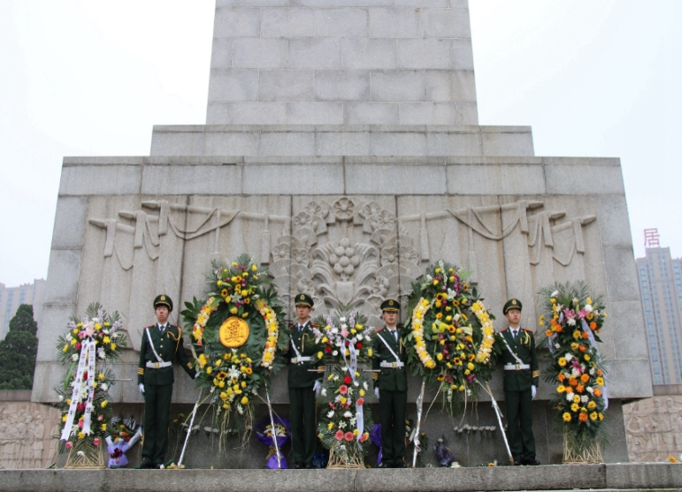 | 向烈士纪念碑献花圈 |