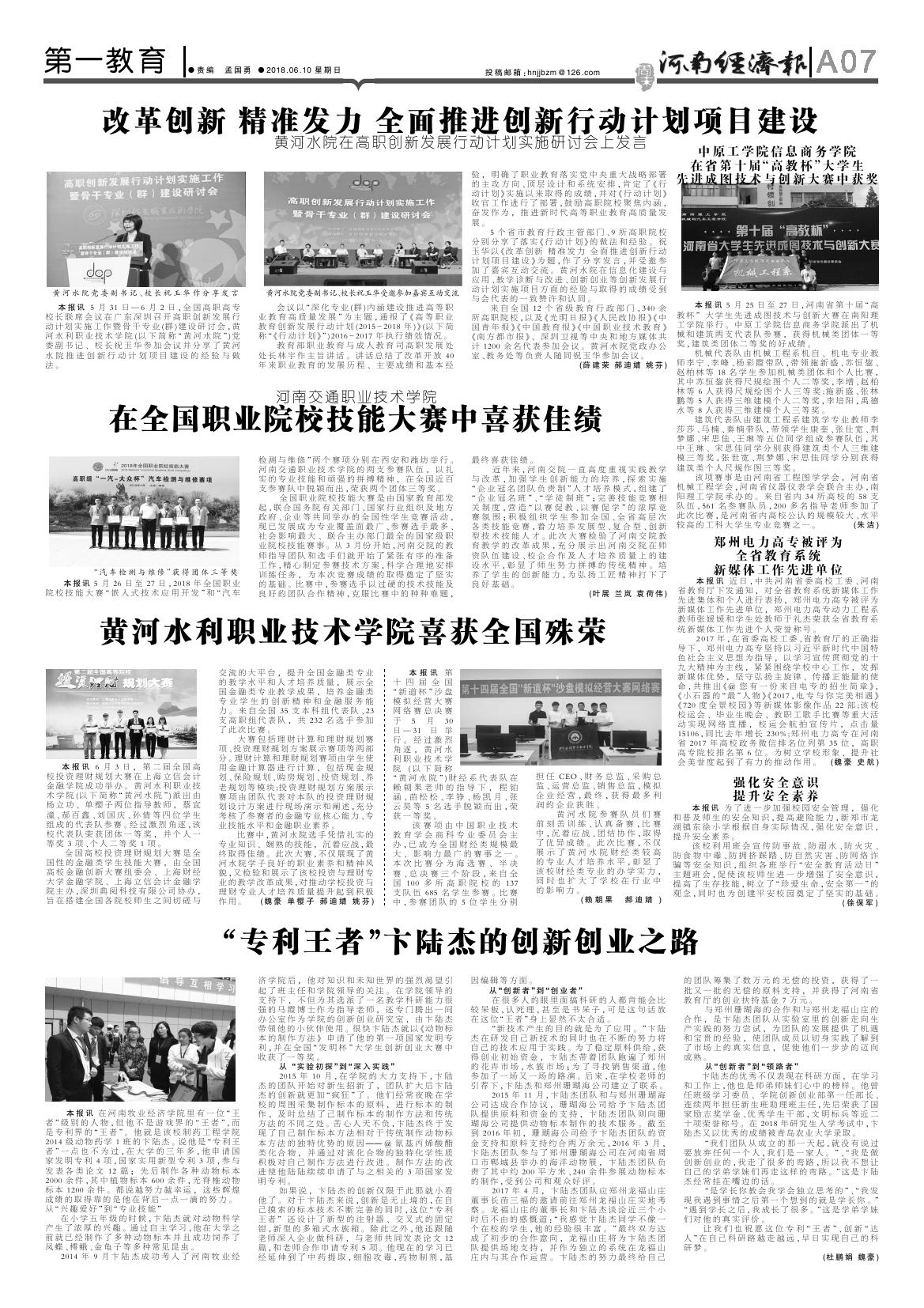 近日,《河南经济报》、映象网分别以《“专利王者”卞陆杰的创新创业之路》(相关链接:http://zm.zyjjw.cn/20180610/A7.html)、《“专利王者”的创新创业之路》(相关链接:http://www.hnr.cn/newedu/gx/xwrs/201806/t20180606_3107517.html)为题报道了完美官网创新创业典型事迹,全文转载如下: