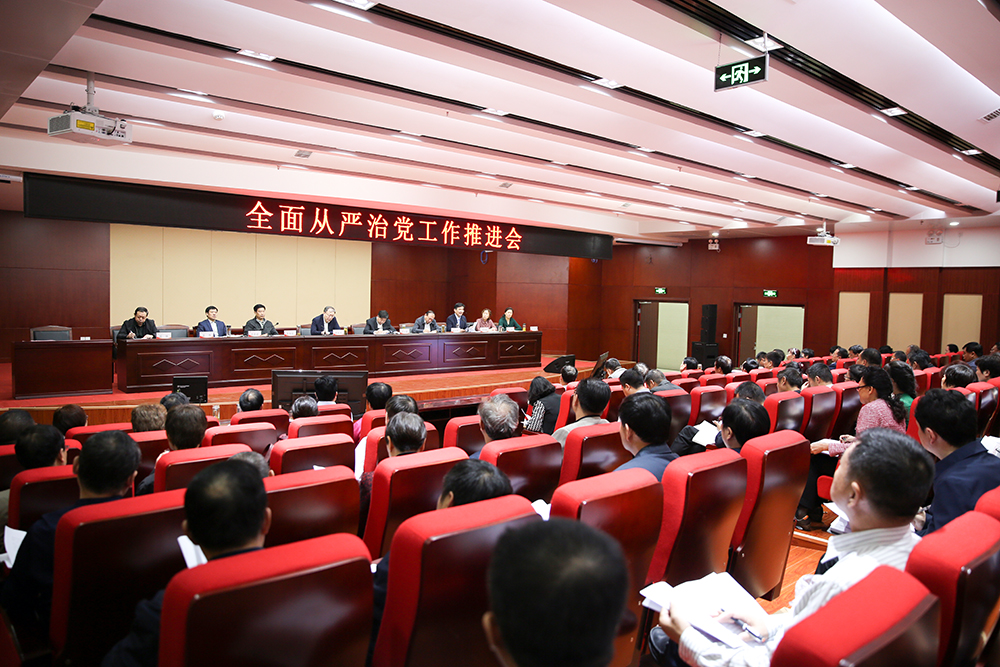 9月25日下午,学校在龙子湖校区图书馆一楼报告厅召开全面从严治党工作推进会。校领导穆瑞杰、罗士喜、李绍文、张卫宪、许圣道、李中华、陈艳、程慎、杨志清出席会议,各党总支书记、各单位党政负责人参加会议。校党委书记穆瑞杰就如何做好以案促改推进学校全面从严治党工作讲话。会议由校党委副书记、工会主席李绍文主持。