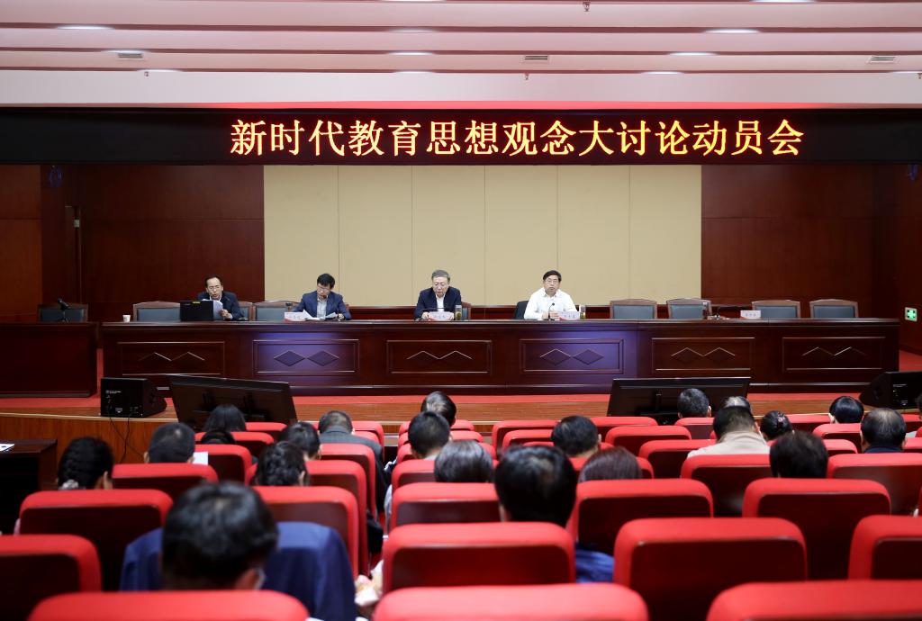 下午,学校在龙子湖校区图书馆一楼报告厅召开新时代教育思想大讨论动员会。校党委书记穆瑞杰、校长罗士喜出席会议并讲话,各单位党政负责人参加会议。会议由副校长许圣道主持。