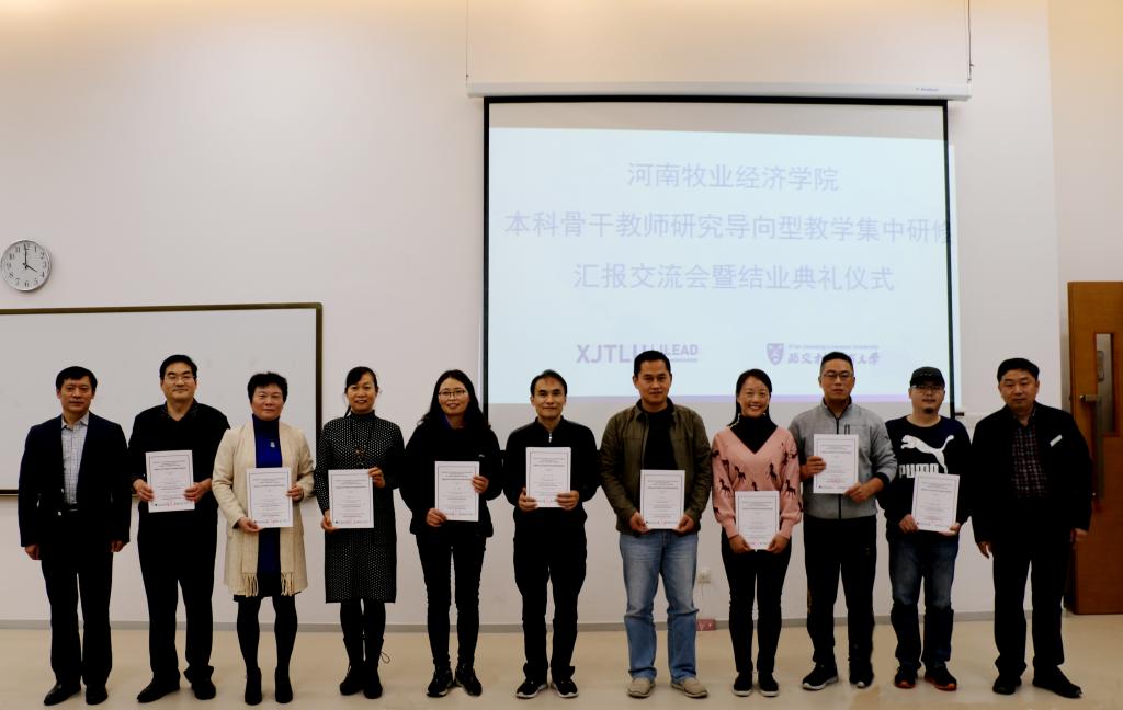 许圣道在研修班结业仪式上作总结讲话。他指出,此次研修班主要有三个方面的收获:一是我们的老师现场感受了“以学生为中心”的理念和氛围;二是我们的老师现场感受了“研究导向型课堂教学模式”的效果;三是我们的老师现场感受了西交利物浦大学教师一切为了学生和全身心投入教学的职业精神。对如何运用好这次集中研修的成果,他提出三点意见:一是各二级学院要对全院教师传达交流本次研修班的成果和体会,并拿出具体方案进一步推进“启发式讲授、互动式交流、探究式讨论”的课堂教学改革;二是各专业负责人要在本教研室交流本次研修的体会和感悟,并结合各专业人才培养目标定位,深入研讨如何加强课程建设和课堂教学改革;三是参训教师要结合自己承担的课程,制定出一门课程的“研究导向型课程教学设计实施方案”,开展一次示范性观摩教学活动。