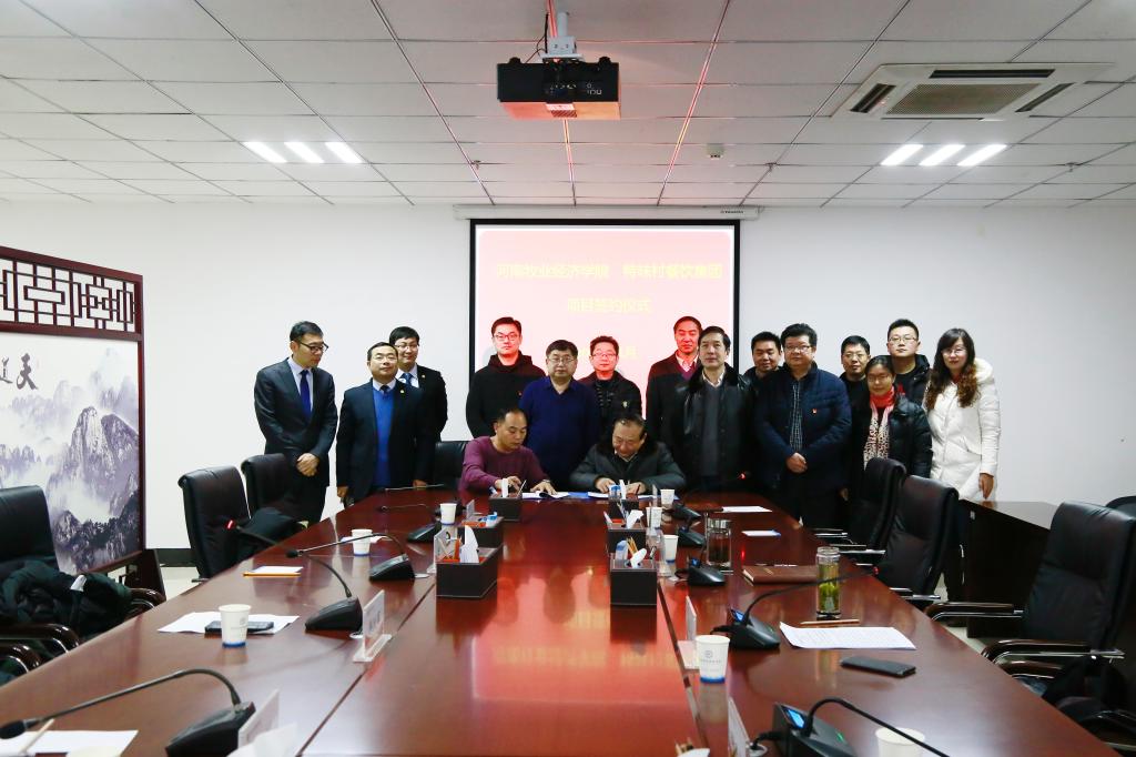 张卫宪代表学校与特味村餐饮集团控股郑州美宴食品有限公司签订了100万元横向课题合作协议。