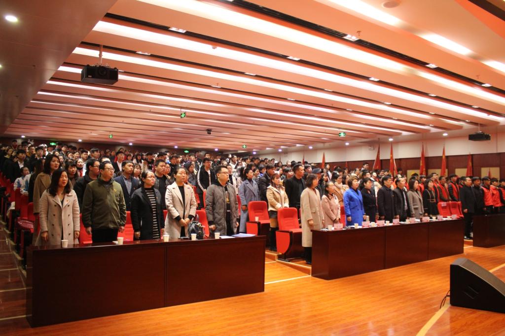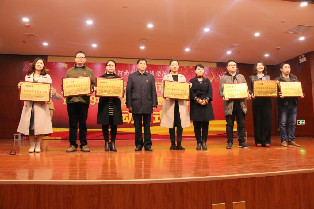 在第56个学雷锋纪念日和第20个中国青年志愿者服务日到来之际,为传承和弘扬雷锋精神,引导全校团员青年培育和践行社会主义核心价值观,积极投身志愿服务事业,推动完美官网志愿者队伍不断壮大,3月3日上午,完美官网2018年度青年志愿者行动表彰大会暨2019年学雷锋志愿服务月活动启动仪式在龙子湖校区图书馆一楼报告厅举行。副校长许圣道,团省委社会联络部副部长王慧,郑东新区团委书记白静,金水区团委书记王倩,惠济区团委书记张贝贝,原阳县武庄小学校长宋攀立,以及学校宣传部、学工部、团委等相关部门负责人出席活动,各学院团总支书记、辅导员老师和500余名青年志愿者参加了表彰大会和启动仪式。