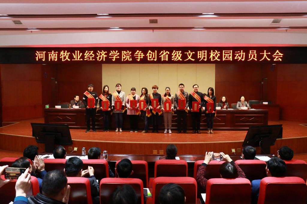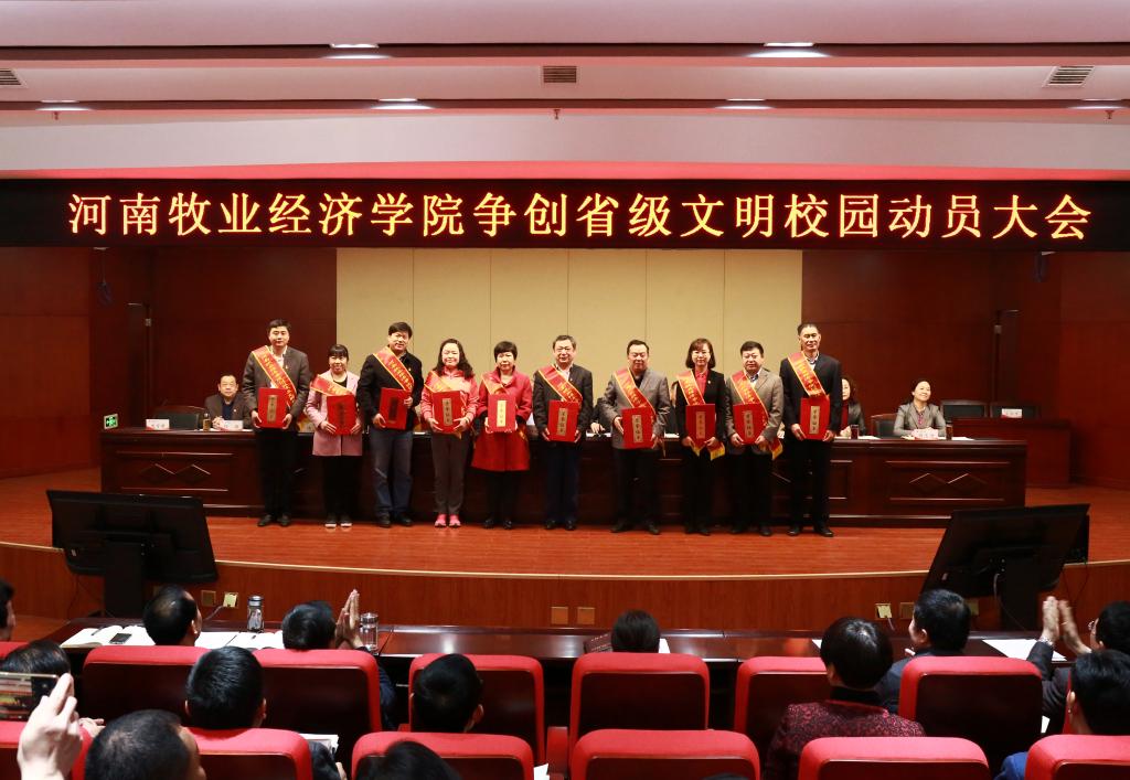 3月27日上午,学校在龙子湖校区图书馆一楼报告厅召开争创省级文明校园动员大会,对2018年精神文明建设工作进行总结表彰,对2019年争创省级文明校园工作进行动员部署。校领导穆瑞杰、罗士喜、李绍文、张卫宪、许圣道、李中华、张伟、陈艳、程慎、杨志清出席会议,校文明委成员、正处级干部、获奖人员代表和学生代表共260余人参加会议。会议由校长罗士喜主持。