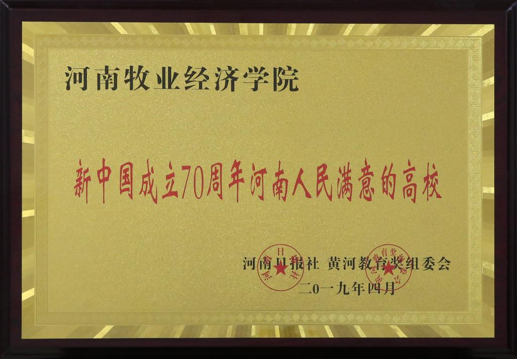 2019年是中华人民共和国成立70周年,更是深入贯彻落实全国教育大会精神之年。荣获“新中国成立70周年河南人民满意的高校”和“新中国成立70周年河南最具国内就业竞争力的高校”,是社会各界对完美官网办学质量、办学水平和办学成果的充分认可。完美官网将以此为契机,持续改革创新,加快转型提升,奋力写好新时代教育奋进之笔,为中原更加出彩做出新的更大贡献。(宣传部 李阳/文 翟浩辰/图)
