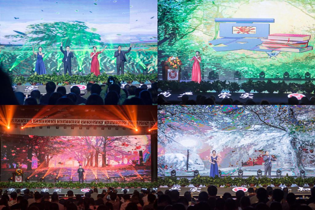 颁奖典礼在舞台剧《青春·大学记忆》中拉开帷幕。音诗画《春》《夏》《秋》《冬》深情讴歌了学工人的不易与坚守;情景剧《青春不透支》倡导青年学生传递正能量,远离“校园贷”;朗诵情景剧《弦歌不辍薪火传》古风古韵,在经典吟诵中向观众传达了读书的重要性;情景诗朗诵《和你在一起》展现了辅导员与学生之间浓厚的师生情。颁奖典礼在歌伴舞《我和我的祖国》的昂扬旋律中落下帷幕。