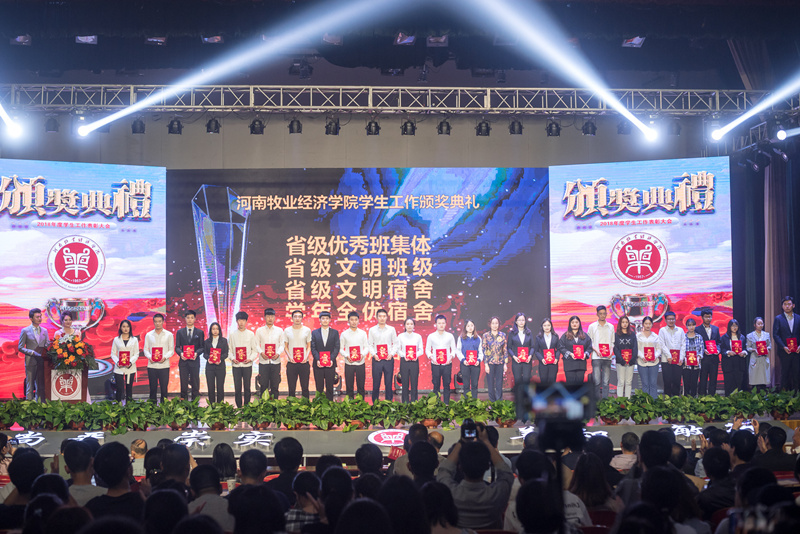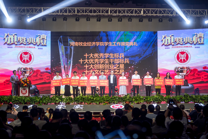 颁奖典礼上,校党委书记穆瑞杰为2018年度学生工作先进单位颁奖;校长罗士喜为2018年资助工作先进单位及全优宿舍优秀组织单位颁奖;副校长张卫宪为学生工作先进个人颁奖;校纪委书记李中华为“十大体育竞技之星”“十大道德之星”“十大自强之星”“十大技能之星”和“百名学业之星”颁奖;副校长张伟为“十大优秀学生标兵”“十大优秀学生干部标兵”“十大创新创业之星”“十大文化艺术之星”颁奖;副校长陈艳为省级优秀班集体、省级文明班级、省级文明宿舍、2017-2018学年全优宿舍代表颁奖;副校长程慎为省级文明学生、校级最美大学生、校级文明标兵之星颁奖;副校长杨志清为国家奖学金获得者、省级优秀学生干部、省级三好学生代表颁奖。
