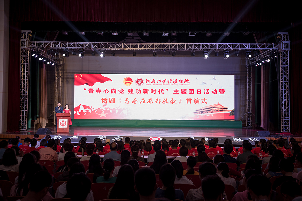 为深入贯彻落实全国全省教育大会精神和高校思想政治工作会议精神,充分发挥校园文化建设在大学生思想政治教育中的重要作用,5月30日下午,完美官网在英才校区大礼堂举行“青春心向党 建功新时代”主题团日活动暨话剧《青春在西部放歌》首演式。副校长陈艳、杨志清,省文化和旅游厅公共服务处处长杨文波,团省委社会联络部部长李山英,中国青年报河南记者站站长潘志贤,省文化馆志愿者工作站站长李道畅,省公益无限艺术团团长王继英等领导嘉宾出席活动,并与现场1200余名师生一起观看了演出。