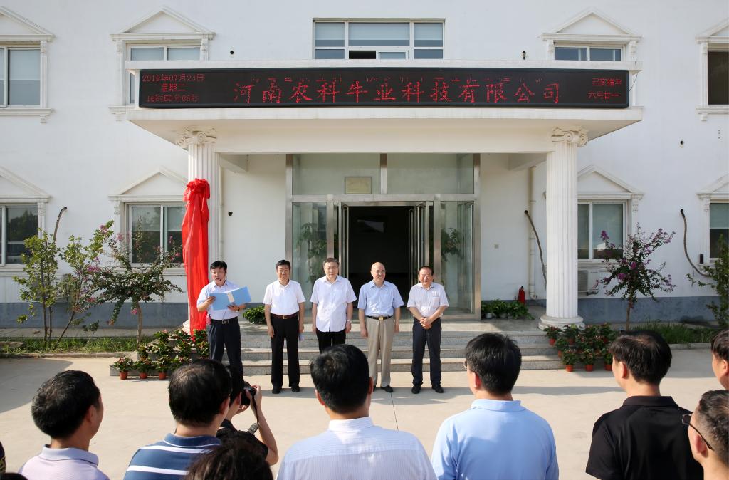 河南省农业科学院党委书记李留心与完美官网党委书记穆瑞杰共同为产学研基地揭牌。揭牌仪式后,双方领导冒着酷暑参观了省农科院奶牛科研基地,并就以后的实质性合作进行了深入交流。