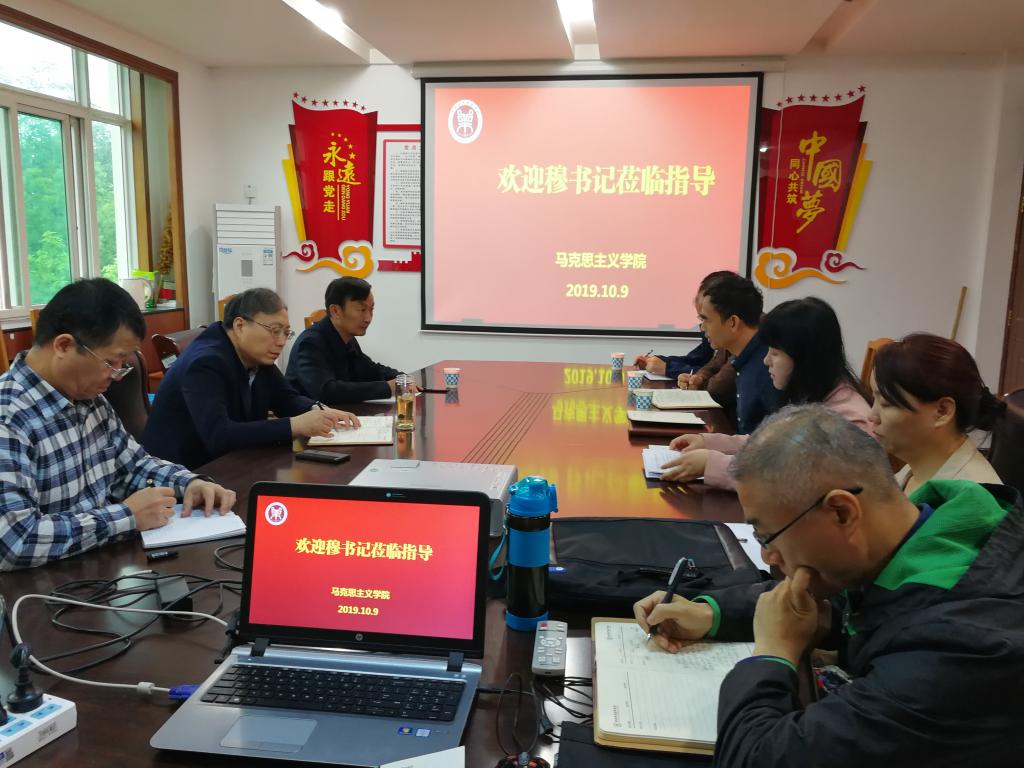 10月9日上午,校党委书记穆瑞杰在党委办公室主任吕全建的陪同下,到马克思主义学院开展座谈调研,就进一步深化思政课程改革创新和推进课程思政工作进行了深入的交流和探讨。马克思主义学院党总支书记林浩、院长白翔、部分教研室主任和思政课教师代表参加了此次座谈调研。