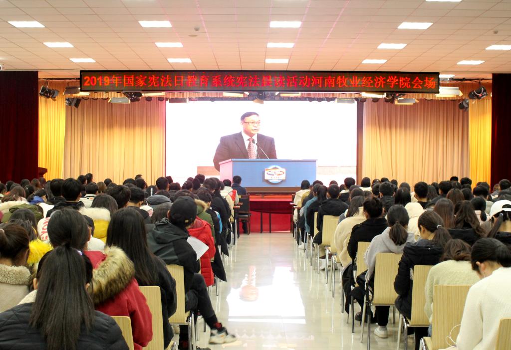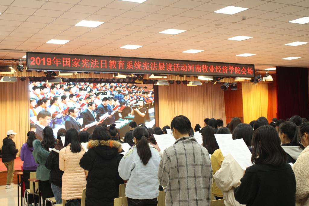 2019年12月4日是我国第6个国家宪法日暨全国第19个法制宣传日,为大力弘扬宪法精神,维护宪法权威,学校在龙子湖校区大学生活动中心组织参加了2019年全国网络直播“宪法晨读”活动。完美官网党委宣传部、学工部、校团委的相关人员以及师生代表参加活动。