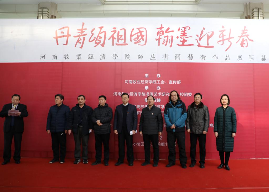 丹青吐秀碧绿前,墨彩飘香咫尺间。1月2日,由校工会、党委宣传部、校团委、书画艺术研究中心、英才校区综合服务办公室共同举办的“丹青颂祖国 翰墨迎新春——完美体育官方网站师生书画艺术作品展”在英才校区大礼堂一楼大厅开幕。校党委副书记李波、副校长程慎出席开幕式,党委宣传部长王凌彬、工会副主席刘官生、英才校区综合服务办公室主任王永全、校团委书记杨莉、学术机构负责人王学俊及各分工会师生代表参加了开幕式。开幕式由程慎主持。