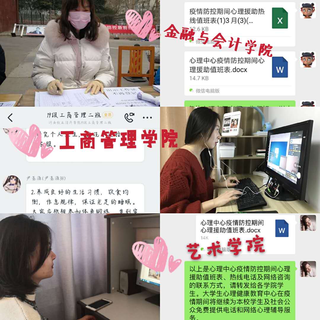 自1月29日起,大学生心理健康教育中心开通24小时心理援助热线电话18569909371,面向全校师生和惠济区广大群众开展疫情相关心理支持及危机干预工作,帮助师生和公众树立积极、平和、理性心态。