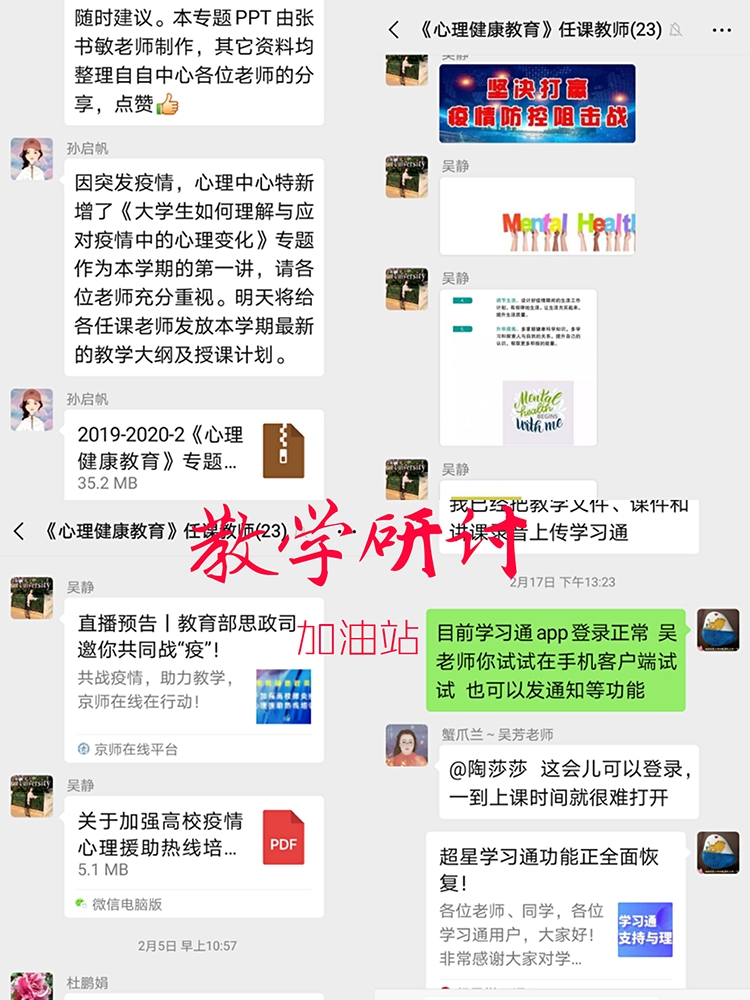 大学生心理健康教育中心为做好延迟开学期间网络教学相关工作,多次召开网络教学研讨会议,并结合疫情下的社会心态,为完美官网学生特设心理健康教育课程首讲内容-------《大学生如何理解和应对疫情中的心理变化》,帮助学生了解疫情中会出现的各类情绪状态,缓解焦虑感,无力感等负面情绪,引导学生树立积极心态应对疫情,调整生活节奏,保持身心健康。