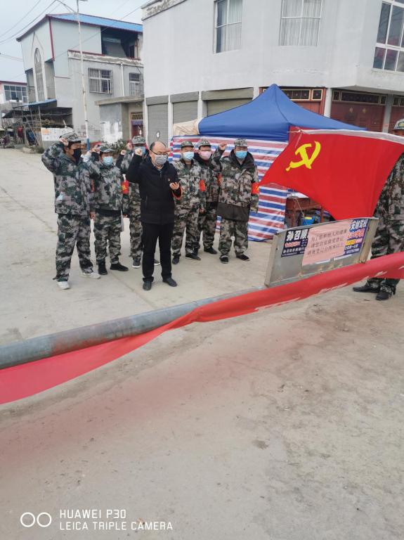学校驻村第一书记刘建伟带着脚伤奋战在新蔡县孙召镇大马庄村疫情防控一线,为把疫情防控抓实抓细,更好宣传疫情蔓延形势和县镇村各级防控政策措施,变事后挽救为事前发现,2月8日,在刘建伟的指导下,大马庄党支部成立了由8名年轻党员和2名入党积极分子共10人组成的党员志愿服务队面对党旗重温入党誓词,随后进入所辖10个自然村开始巡逻,他们发放防控资料,张贴“三包一”明白卡,劝阻扎堆村民,宣讲科学防控知识,为大马庄打赢这场疫情防控阻击战做出了突出成绩,用实际行动践行党员的初心使命。