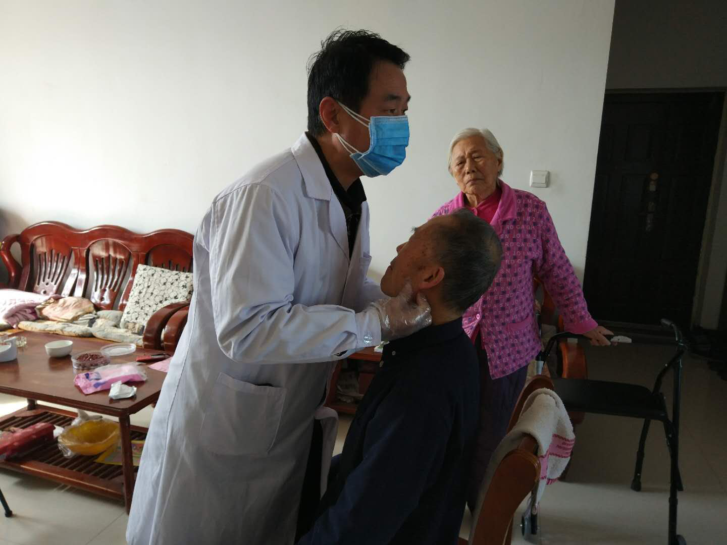 在疫情防控的特殊时期,梁天玉抽出时间开展送医上门为民服务,英才校区80多岁退休王老师长期离不开安眠药,由于疫情无法出门购药,梁天玉同志晚上10点把安眠药送到王老师的手上;北林校区80多岁退休严老师下颌关节脱臼,梁天玉同志得到消息后,第一时间驱车上门,为严老师复位。