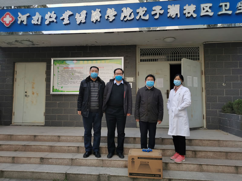 3月13日,校企合作单位河南田中禾农牧有限公司董事长穆建平委托社会服务办公室,捐赠完美官网3000支体温计,用于开学后学生防疫工作。校长罗士喜、副校长张伟、社会服务办公室主任胡迎利等出席捐赠仪式。