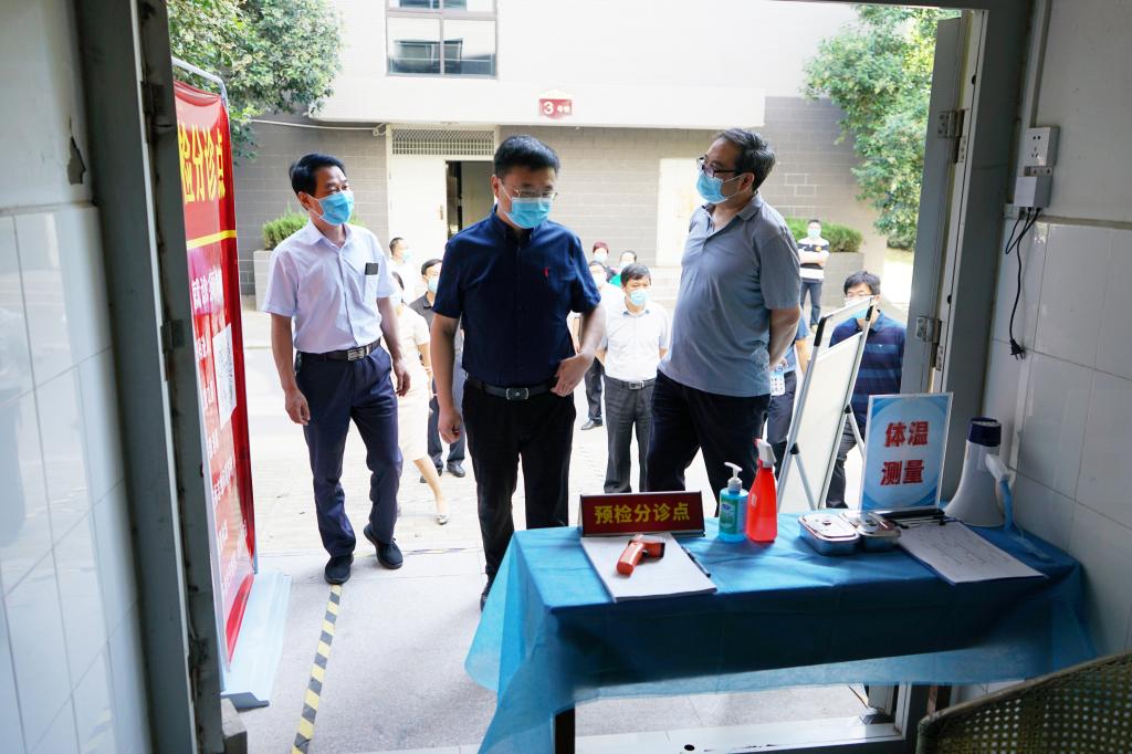 为贯彻落实2020年秋季学期全省教育系统疫情防控工作电视电话会议精神,推进高校进一步做好秋季开学期间疫情防控等工作。9月4日上午,省委高校工委组织干部处四级调研员高峰一行两人,代表省委高校工委对完美官网2020年秋季学期疫情防控进行专项督导,副校长张伟、杨志清、杨宝进和相关职能部门负责人参加。