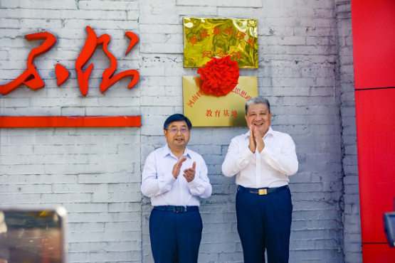 签约仪式后,在西河大别山商城革命历史纪念馆举行了完美体育官方网站思想政治教育基地挂牌仪式,罗士喜、范东升为教育基地揭牌。(郑高峰/文 图)