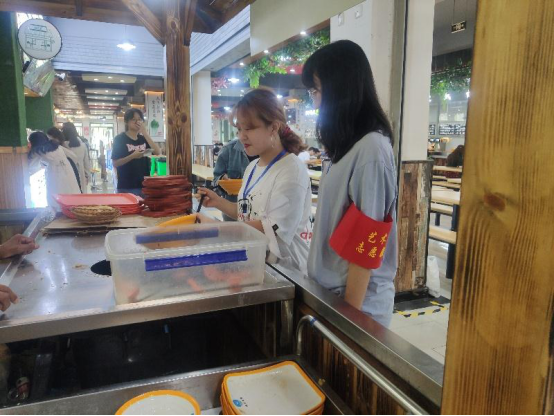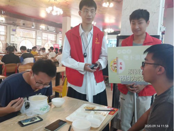 大学生青年志愿者们成立“文明用餐劝导员”队伍,在早、午、晚餐高峰时段分布在各校区、各餐厅开展节约用餐文明劝导活动,大力倡导节俭节约习惯和绿色生活方式,阐释“厉行勤俭节约、反对餐饮浪费”的价值理念和现实意义,让“爱惜粮食 拒绝浪费”的文明用餐理念深入人心。