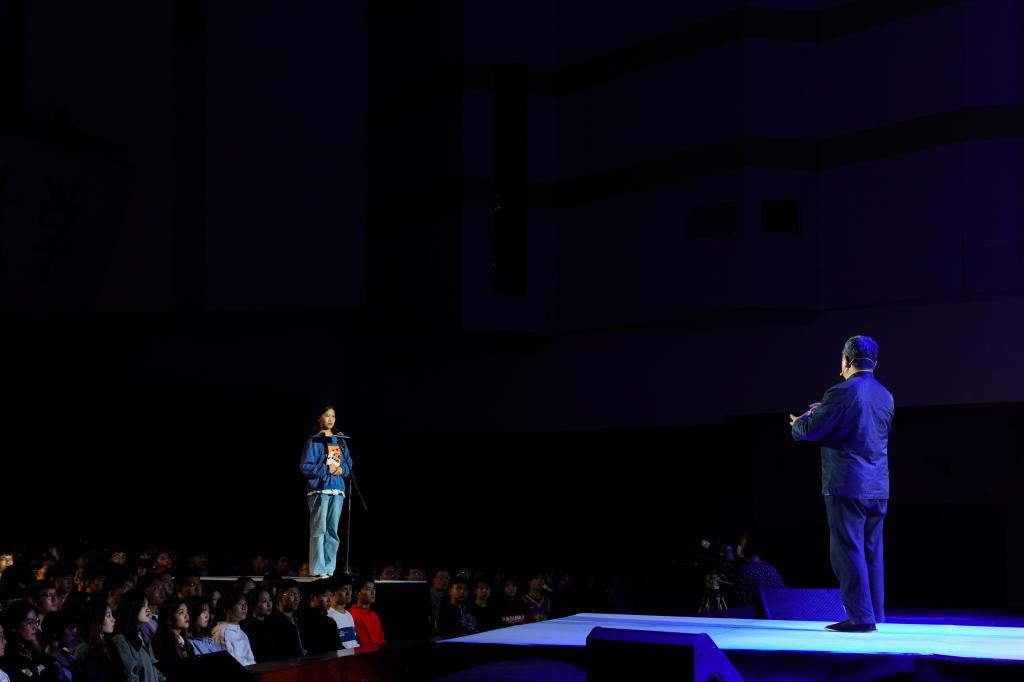下午两点整,在阵阵热烈的掌声中,单霁翔踩着他那熟悉的布鞋走上舞台,延续一贯幽默风趣的演讲风格,结合600多张优美图片,为观众展示了他作为一位学者、文化工作者、故宫学院院长的博学气质与文雅风度。一个多小时的演讲后,神采奕奕的单霁翔深情地与同学们“对白”。