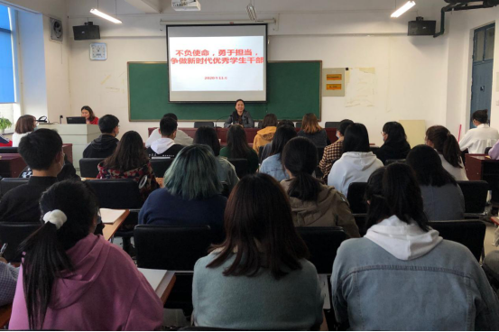 杨志清从青年人的使命担当、学生干部应具备的素质与能力、学生干部的岗位任务与工作三个方面进行讲述。她指出,当代青年学子要从国家长远发展、社会文明发展、个人幸福三方面思考自己的使命,努力成为社会主义事业的合格建设者和可靠接班人。杨志清强调,学生干部一定要秉承“服务他人,成就自己”的理念,协调好学习、生活、工作、人事之间的关系,在做事中提升沟通、组织、协调、创新等方面的能力,树立“四种意识”,发挥“五个效应”,争做“六有”大学生;学生干部要勤奋学习、以身作则,发挥模范带头作用,带领周围同学以饱满的精神状态迎接学校本科教学工作合格评估。杨志清以奋战在抗疫一线的青年力量为例,向大家展现了当代爱国主义精神的传承,凸显了青年人的担当,并希望青年学子勇担历史使命,将青春梦想融入实现中华民族伟大复兴的中国梦。