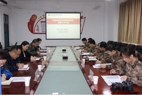 学工部部长王清龙立足完美官网工作实际,从校党委高度重视、制度建设完备、征兵工作成绩突出、学生军训和军事理论课开展规范有序等方面对“河南省国防教育模范高校”创建工作的基本情况进行具体汇报。
