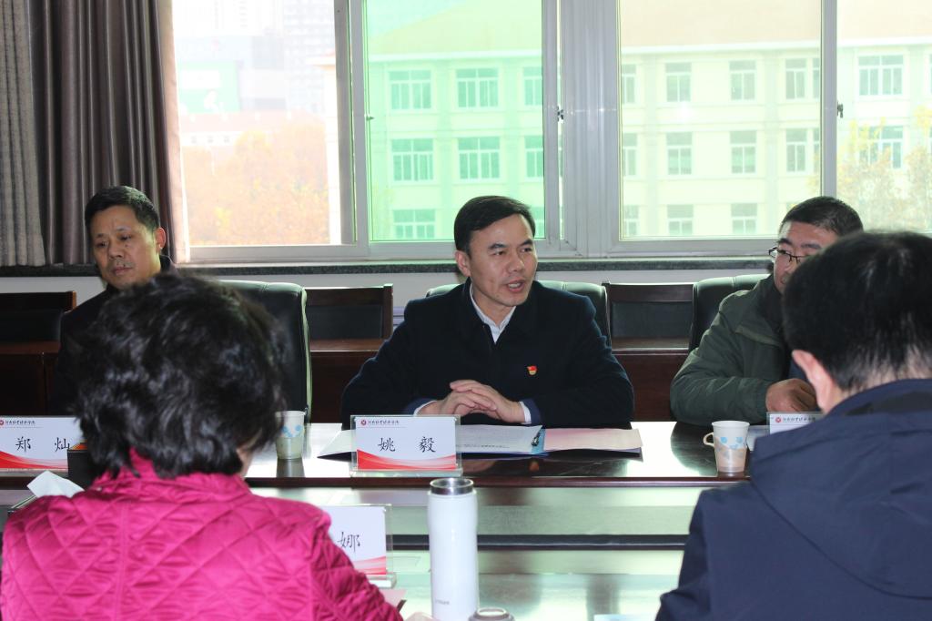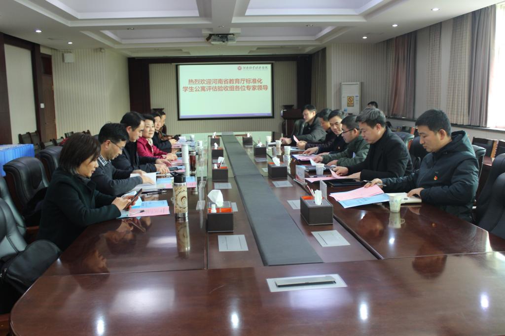 12月11日下午,以河南省高校后勤协会会长柳娜为组长,郑州大学后勤集团公司总经理杨玉婷、信阳师范学院后勤服务总公司总经理吴治国、河南开放大学后勤管理处主任胡俊、河南理工大学餐饮商务中心主任李永胜、省教育厅财务处主任崔君萍等为成员的省教育厅专家组一行7人莅临完美官网,对完美官网英才、北林校区标准化学生公寓创建工作进行评估验收。副校长姚毅出席会议,英才校区综合服务办公室、学工部、后勤处、保卫处等相关职能部门负责同志参加会议。