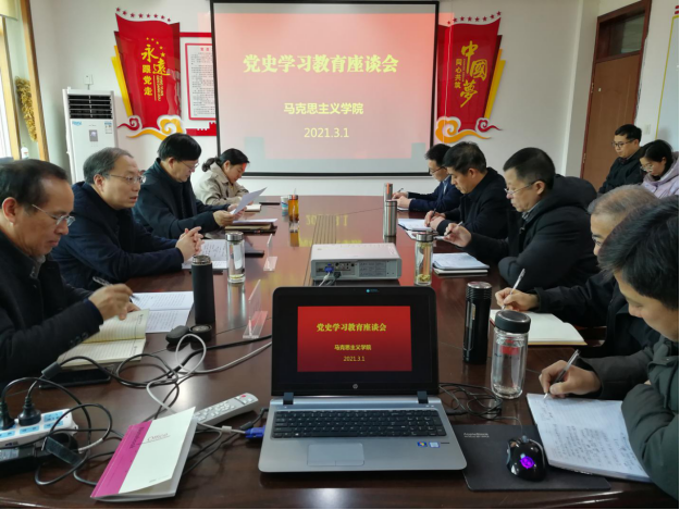 3月1日下午,校党委书记穆瑞杰到马克思主义学院,在英才校区原行政楼414会议室主持召开党史学习教育座谈会,校党委副书记李俊杰出席会议。校党委宣传部主要负责人,马克思主义学院领导班子成员,教研室主任和教师代表参加座谈会。