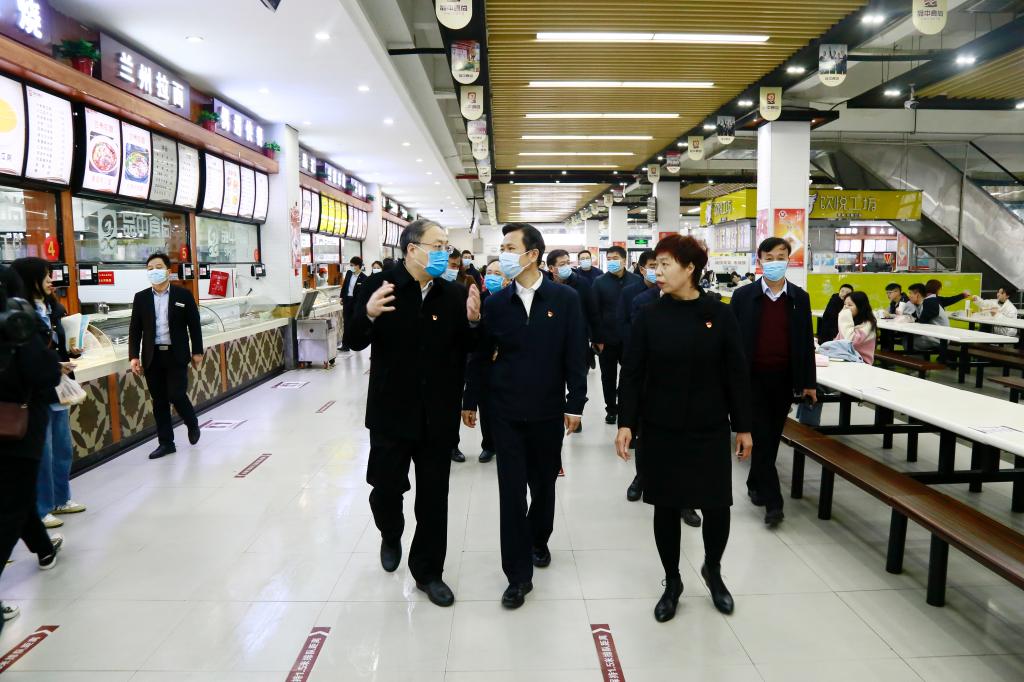 江凌先后来到畜产品质量安全技术研究院、学生宿舍、食堂、图书馆、校史馆等地进行实地调研,并与师生代表座谈交流。