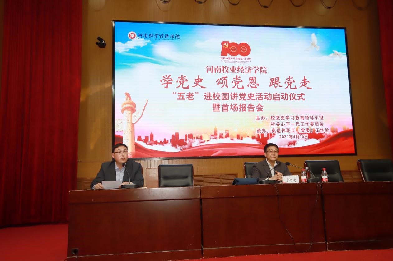 李波宣读了《关于开展“五老”进校园讲党史活动的通知》,他要求活动要坚持正确导向,加强组织领导,做好宣传报道,切实与庆祝建党100周年结合起来,与学校本科教学工作合格评估结合起来,与推动学校党建高质量发展结合起来。