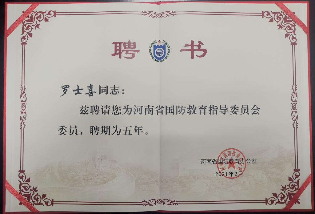 会上,罗士喜被聘任为河南省国防教育指导委员会委员,并被授予聘书。