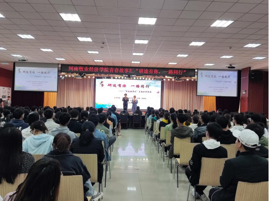 4月26日,由学工部、校团委主办,外国语学院承办的青春故事汇“研途有你,一路同行”考研优秀学子主题分享会在龙子湖校区大学生活动中心举行。外国语学院党委书记王明栓、副书记李燚,学院专业教师、辅导员以及全校300余名学生代表参加分享会。