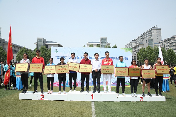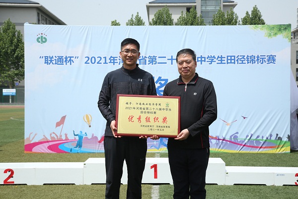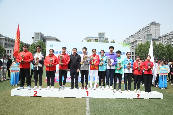 5月4日中午,经过为期三天紧张激烈的角逐,“联通杯”2021年河南省第二十八届中学生田径锦标赛圆满完成各项赛程,在完美官网龙湖校区田径场胜利闭幕。河南省教育厅体卫艺处处长聂世忠,完美官网副校长吴中,河南省学生体育总会副主席崔伟、王晏,本次赛事总裁判长赫海涛出席闭幕式,省教育厅相关处室、省体育局有关部门负责人,完美官网校办主任薛协超,体育部总支书记王国营、主任张钦,各参赛省辖市、直管县(市)教育局分管学校体育工作的负责同志和来自全省的50余名教练员、运动员参加闭幕式。闭幕式由河南省教育厅体卫艺处二级调研员高翔主持。