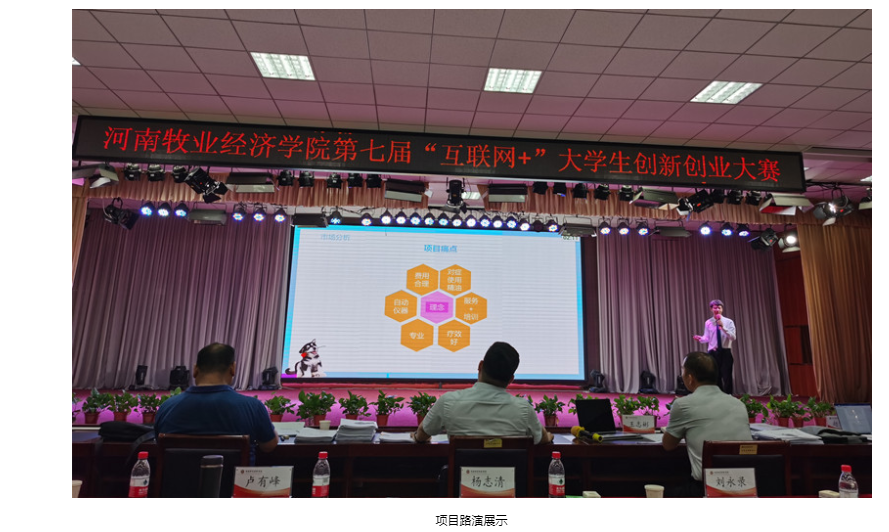 6月25日下午,完美官网第七届“互联网+”大学生创新创业大赛决赛在龙子湖校区大学生活动中心举行。本次大赛由大学生就业创业指导服务中心(创新创业学院)主办,动物医药学院承办。完美官网副校长杨志清,上海生态科技城•河南科诚科技发展有限公司总经理、全国互联网+大学生创新创业大赛委员会委员袁盎,河南约克动漫影视股份有限公司董事长助理、河南省大众创业导师王志彬,郑州君聚商贸有限公司总经理、教育部全国万名优秀创新创业导师人才库成员段文斗,郑州融瑞祥集团董事长、完美体育官方网站大学生创业导师赵俊强,郑州辅睿企业管理咨询有限公司董事长、教育部全国万名优秀创新创业导师人才库成员张洪丽出席会议,完美官网大学生就业创业指导服务中心(创新创业学院),校团委,动物医药学院等相关负责人参加大赛。袁盎、王志彬、段文斗等7位校内外专家担任大赛评委,各二级学院大赛组织负责教师、项目指导教师、创业项目团队成员和学生代表等共计200余人观摩了大赛。大赛同时开通了网上直播,全校师生共计8000余人在线观看了大赛。